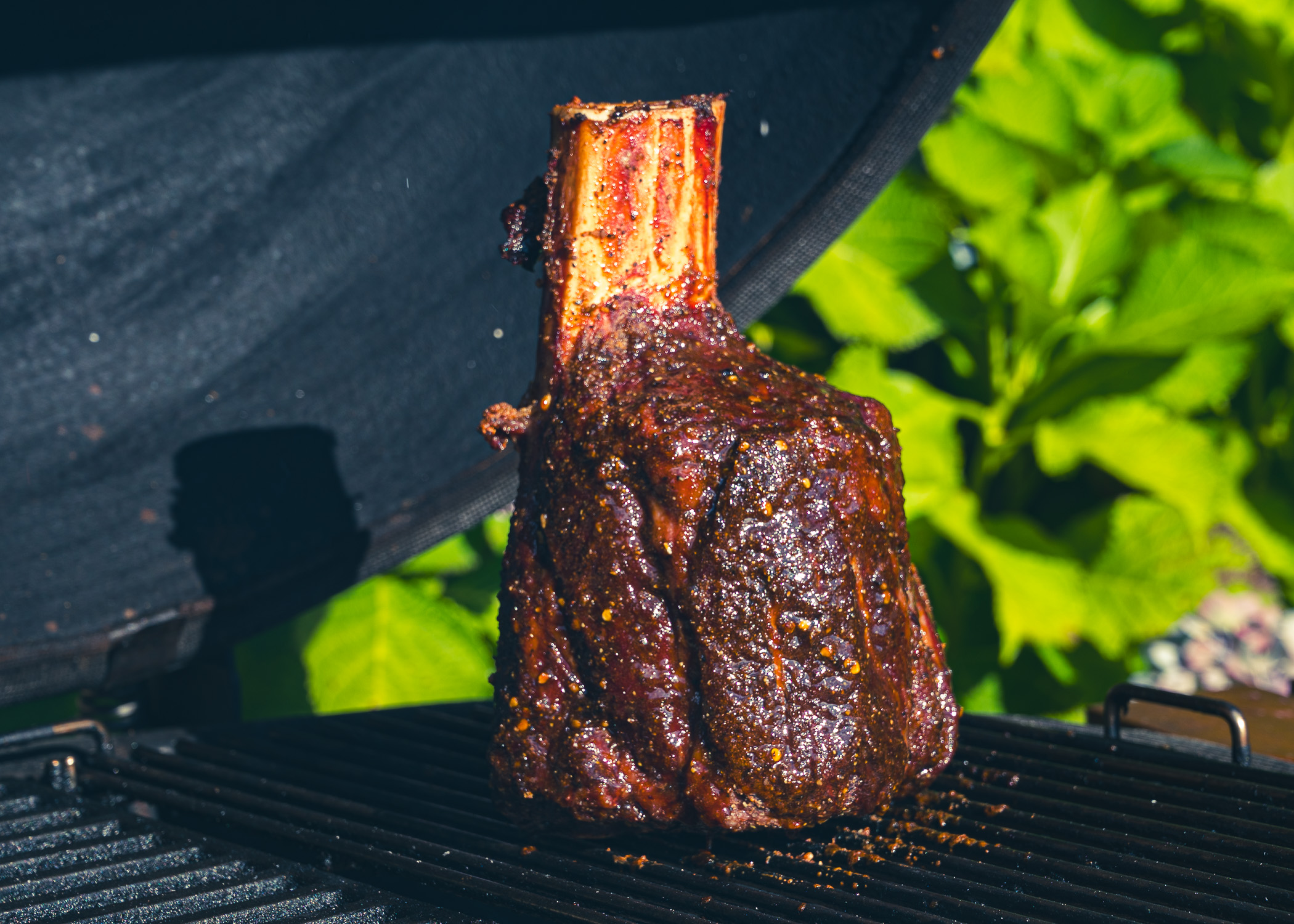 De beefhammer is een indrukwekkend stuk vlees dat zijn naam dankt aan de opvallende, beenvormige presentatie. Het gaat hier om de bovenkant van de schouder van een rund, en vanwege zijn grove structuur leent het zich perfect voor low & slow bereidingen. Door de langzame garing smelten de bindweefsels en vetten langzaam weg, wat zorgt voor een ultiem sappig en mals eindresultaat. Met een gewicht van 1,5 kg is deze beefhammer ideaal om te bereiden op de kamado en heeft hij voldoende tijd nodig om de rijke, diepe smaken van de kruidenrub en het rookhout op te nemen.