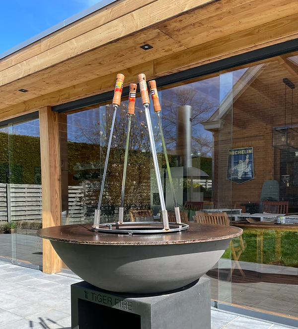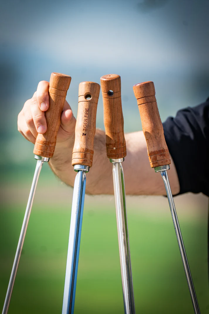 Ontdek de kunst van churrasco met de Tiger Fire spiesen voor de plancha bbq 88. Deze stevige spiesen zijn speciaal ontworpen om vlees, vis en groenten direct boven houtvuur te bereiden – sappig, gelijkmatig gegaard en vol karakter.