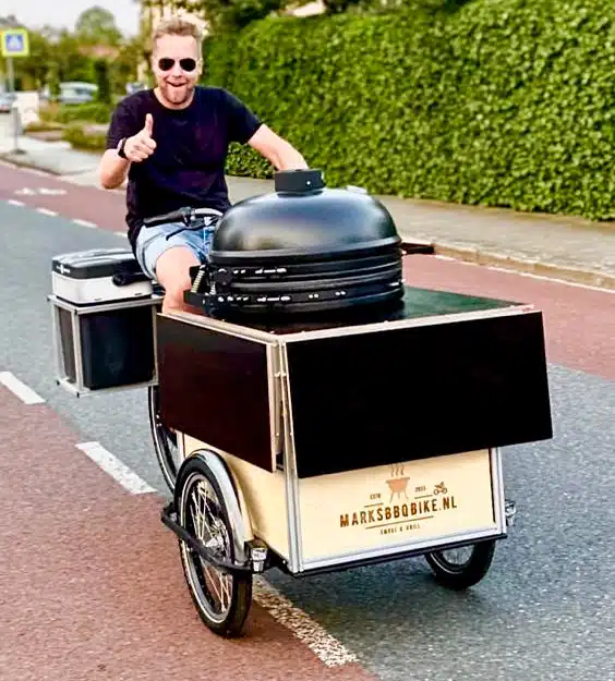 Heb jij ook zo’n fantastische hobby? Fietsen en BBQ’en, en lijkt het je ook leuk om net als Mark de lekkerste BBQ gerechten te bereiden op een kamado bbq op jouw eigen BBQ Bakfiets? Laat dan jouw eigen BBQ Bakfiets maken. De fiets wordt op maat en alleen bestelling gemaakt, en geheel naar jouw eigen wens gebouwd. Interesse? Neem even contact met ons op om de mogelijkheden te bespreken. Chat met ons, of stuur ons een mailtje.