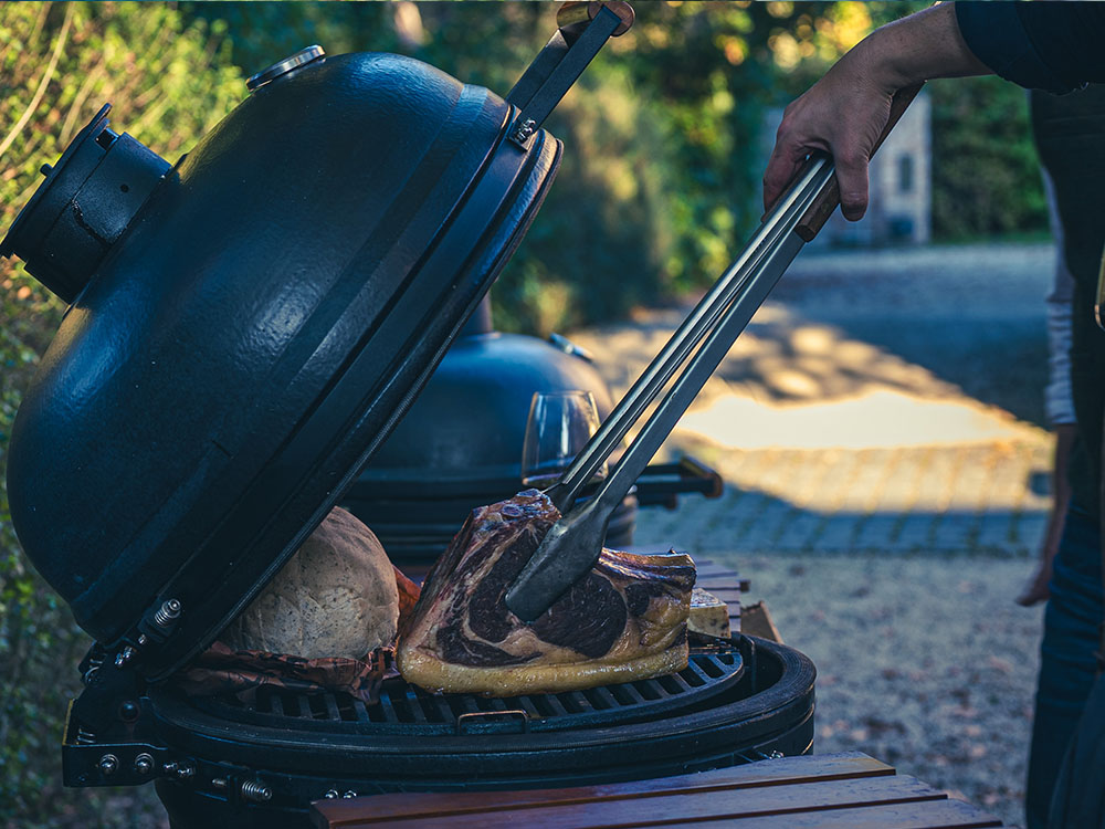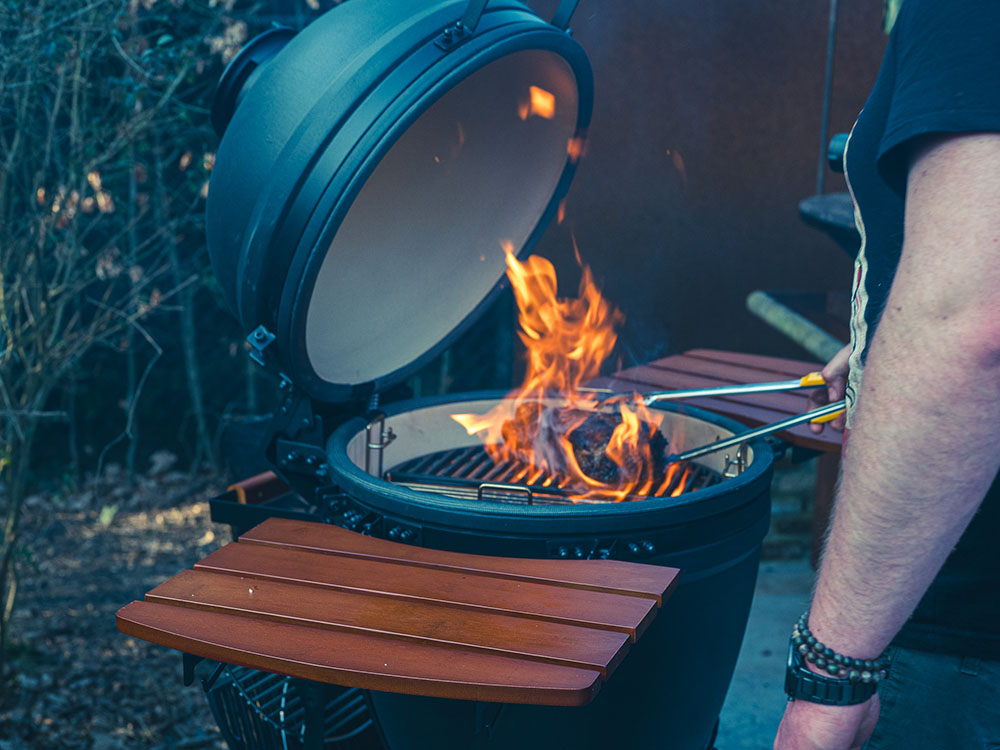 Natuurlijke materialen zoals hout geven onze Grill Bill kamado’s een authentiek en karaktervol uiterlijk. Het warme hout contrasteert prachtig met het robuuste mat zwarte keramiek en zorgt voor die herkenbare Grill Bill-uitstraling.