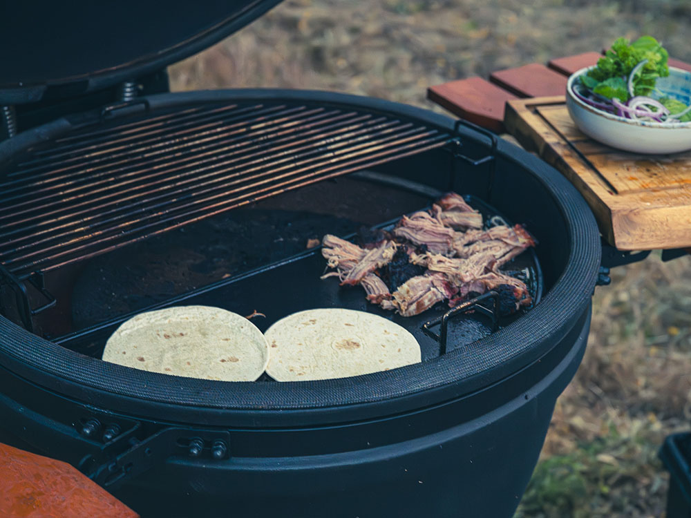 De Pro III is voorzien van een stevige hinge protector en een robuuste handlebar aan de achterzijde. De hinge protector beschermt het scharnier en zorgt voor een stabiele, soepele beweging bij het openen van het deksel, zodat alles perfect in balans blijft. De handlebar daarentegen is speciaal ontworpen om de kamado veilig te verplaatsen, zelfs over oneffen terrein. Gemaakt van hoogwaardig gepoedercoat staal, biedt hij maximale grip en controle. Slim, veilig en stoer.